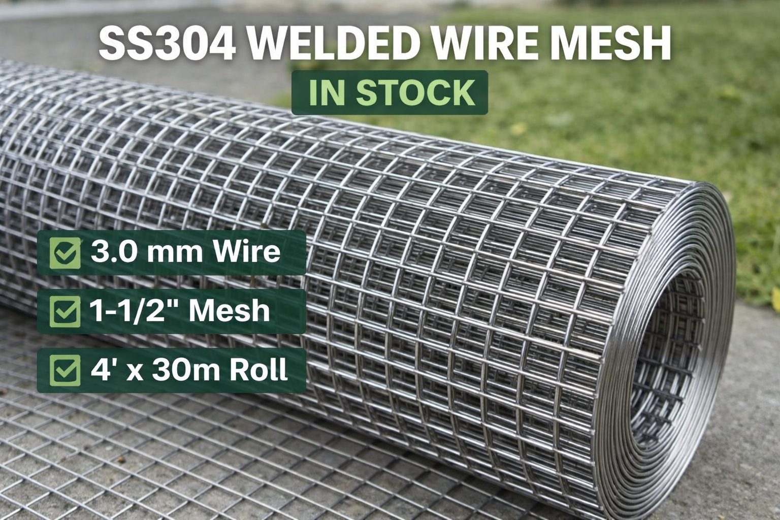 SPECIFICATION- SS304 welded wire mesh 3.0mmX1-1/2″ 4’X30m